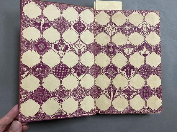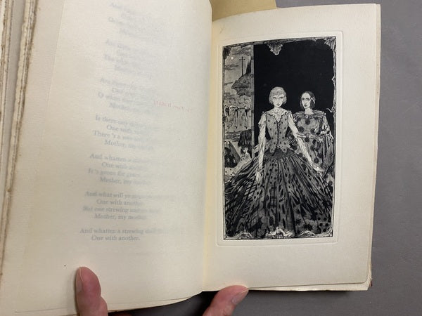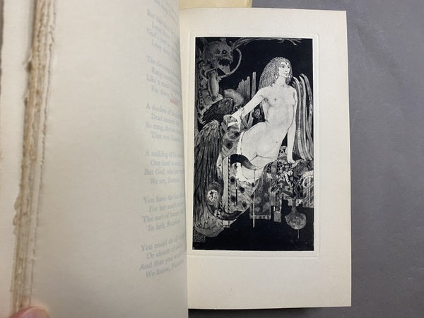 ヴィクトリア朝イングランドの詩人アルジャーノン・チャールズ・スウィンバーンの詩にハリー・クラークによる扉絵と9枚の挿絵を収録した挿絵本。紫色の布装に金色の箔押しが美しいデザイン。見返しには妖艶な装飾が施されています。
