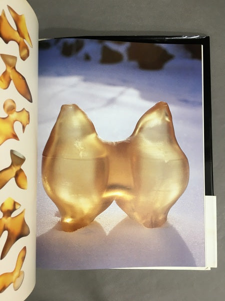 - 90年代初頭のCGグラフィックと3Dプリント作品の作品集。CADソフトウェアによって形状を作り、それらを系統樹のように発展させる手法で造形されています。作品をコンピュータ上で画像化し、3Dプリントしたものを現実の風景の中撮影することでリアルとバーチャルの越境を試みているSF的な一冊。原始生命を思わせる造形、そして当時のコンピュータ・グラフィックスに特有の質感が魅惑的です。