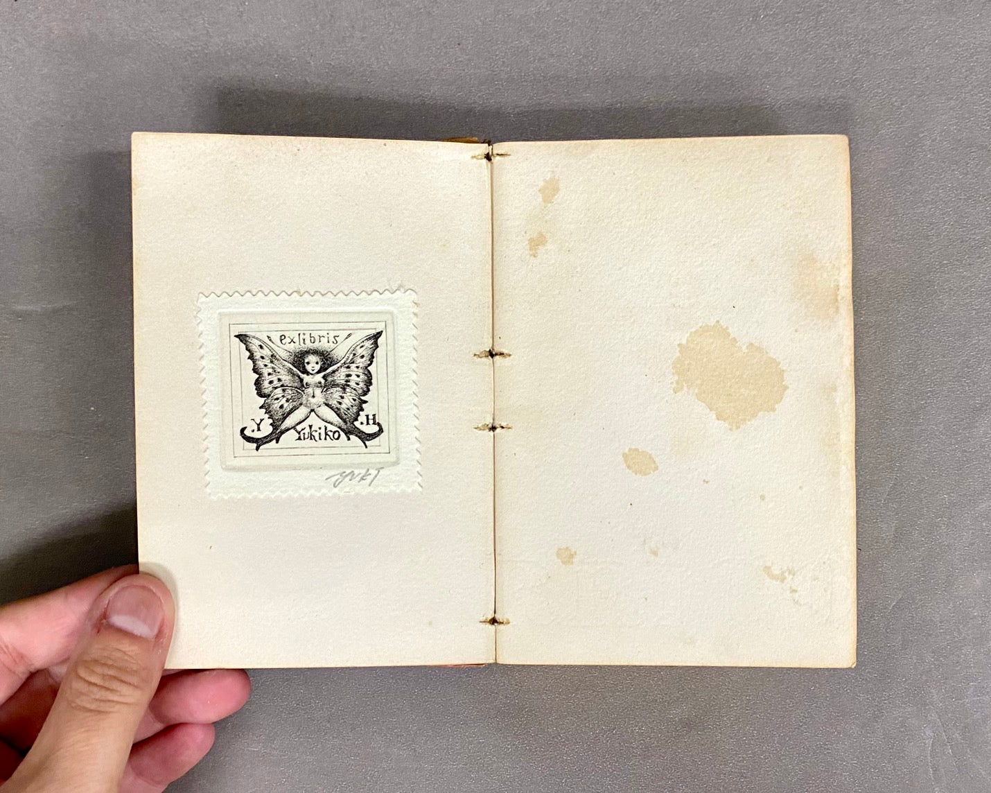 20世紀初頭のイラストレーター、ジョルジュ・バルビエが装画を手掛けている小さな挿絵本です。一枚絵が6枚と、ページ余白の小さなモノクロのイラストが入っています。銅版画家・林由紀子さんによる蔵書票が貼られています。